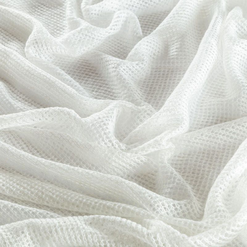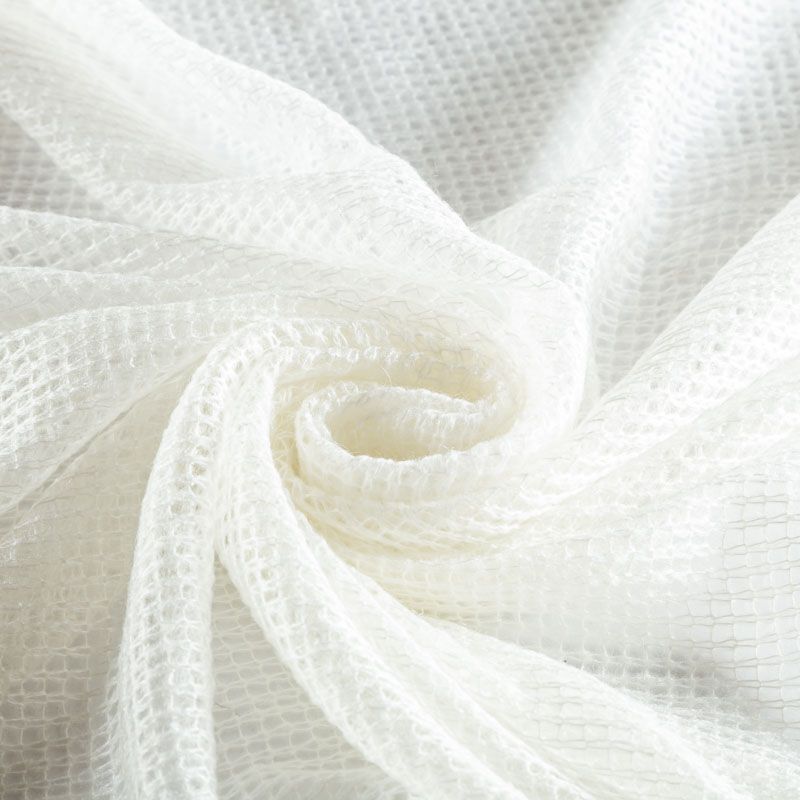 Итальянский тонкий ажурный вязаный трикотаж молочного оттенка. Ткань легкая, мягкая, не колется, прозрачная. Идеально подойдет для пошива водолазки, свитера, кардигана, а также для шарфа, снуда.