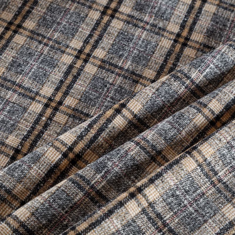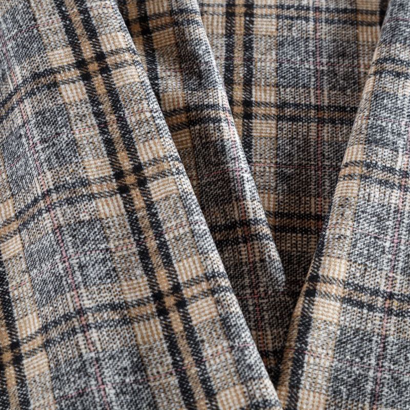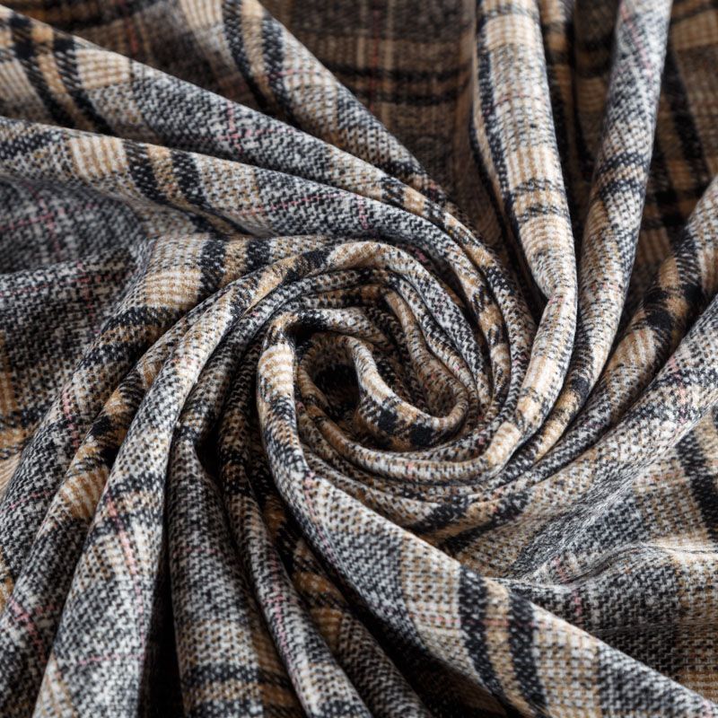 Фактурная и плотная твидовая ткань с добавлением хлопка в красивую черно-бежевую клетку. Ткань мягкая, пластичная, приятная на ощупь. Хорошо драпируется и образует формоустойчивые складки. Твид отлично подходит для пошива костюмов, пальто, пиджаков, брюк и курток, юбок, жилетов, головных уборов в классическом стиле.