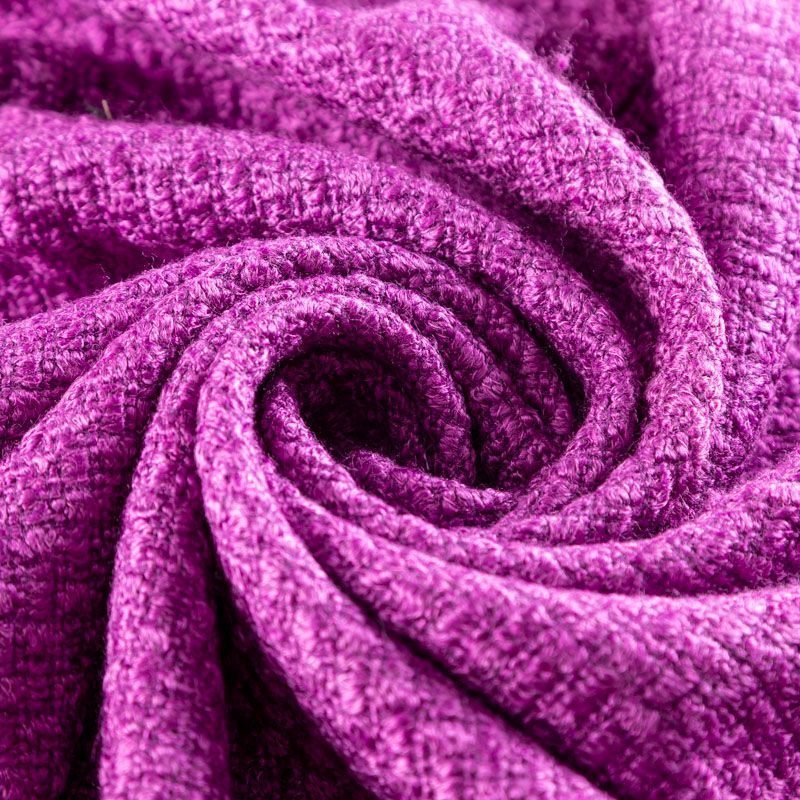 Полушерстяной итальянский твид насыщенного благородного лилового оттенка. Ткань плотная, в меру объемная с легким эффектом букле из нитей того же цвета, которые образуют мелкую клетку. Твид мягкий, пластичный, умеренно держит форму, прекрасно подойдет для пошива жакетов на подкладке, жилетов, кардиганов, легких пальто, юбок и платьев.