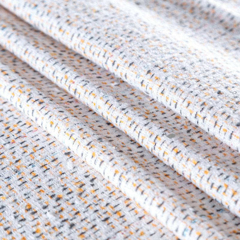 Итальянская мягкая, пластичная и объемная ткань с рельефной структурой. Твид в стиле Шанель буквально соткан из различных по толщине, текстуре и цвету нитей, образующих рисунок в виде клетки и декорирован мелкими пайетками. Твид идеально подходит для пошива платьев, юбок, жакетов, легких пальто, эффектных бомберов и курток.