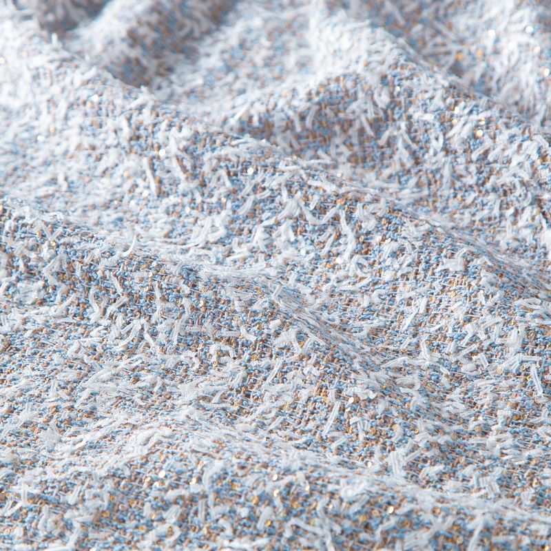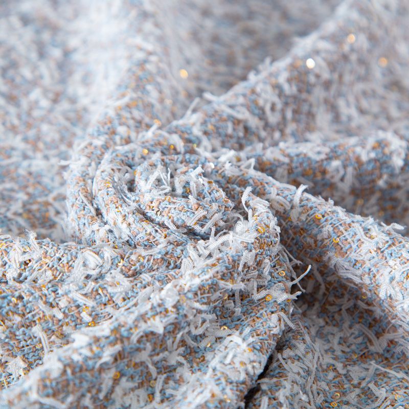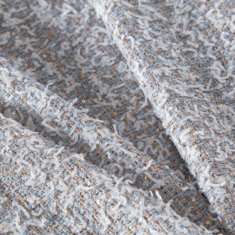 Твид с пайетками 052-20212 бежево-голубой