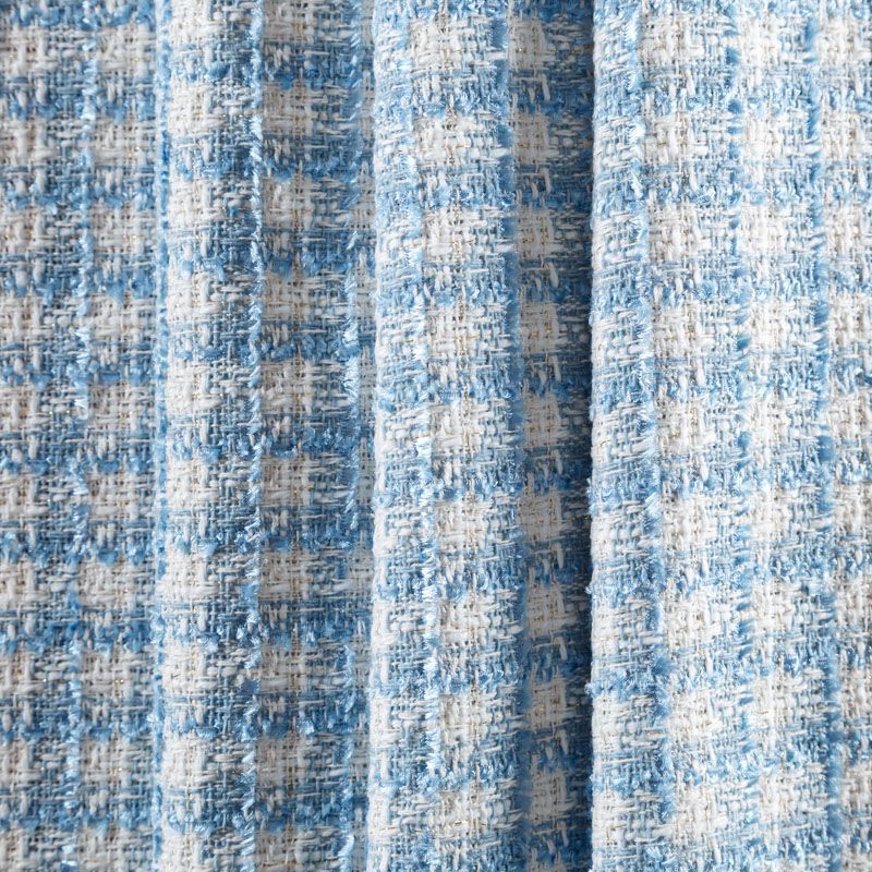 Мягкая, пластичная и объемная ткань, с разреженной и рельефной вывязанной структурой. Буклированный твид в стиле Шанель буквально соткан из различных по толщине и текстуре нитей, образующих рисунок в виде клетки. В плетение добавлена блестящая люрексная нить. Твид идеально подходит для пошива платьев, юбок, жакетов, легких пальто, эффектных бомберов и курток.