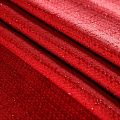 Твид средней плотности с рельефной поверхностью красного оттенка с добавлением акцента в виде люрексовой нити, которая имитирует клетку и добавляет ткани нарядности. Твид пластичный, хорошо драпируется, умеренно держит форму, прекрасно подойдет для пошива жакетов на подкладе, жилетов, кардиганов, легких пальто, юбок и платьев.