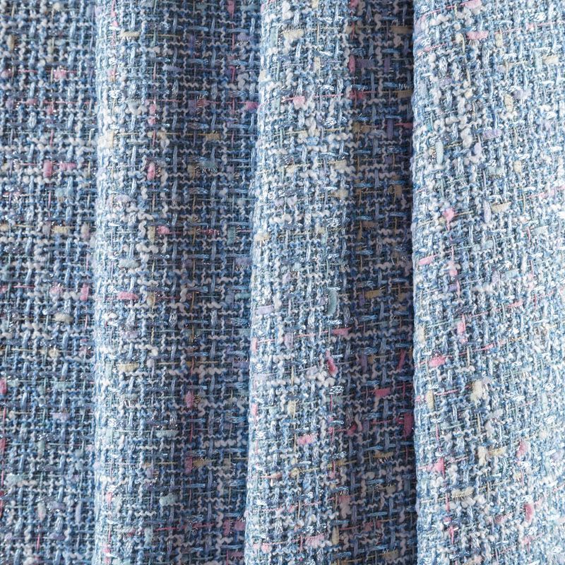 Переплетение разноцветных нитей делает эту ткань универсальной, и в тоже время оригинальной. Полотно средней плотности, очень мягкое, теплое и комфортное. Плетение рыхлое, поверхность фактурная, поэтому изделия выглядят достаточно объемно. Подойдет для пошива костюмов с юбкой, жакетов, облегченных пальто, кардиганов, жилетов, шорт.