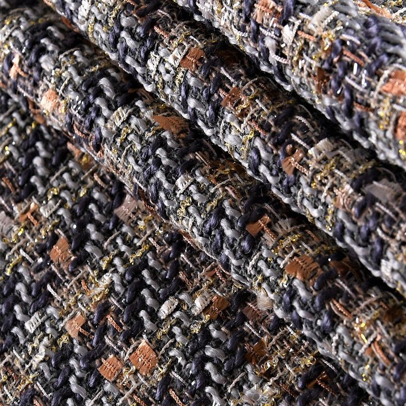 Мягкая, пластичная и объемная ткань, рельефной вывязанной структурой. Буклированный твид в стиле Шанель буквально соткан из различных по толщине и текстуре нитей, образующих рисунок в виде клетки. В плетение добавлена блестящая люрексная нить. Твид идеально подходит для пошива платьев, юбок, жакетов, легких пальто, эффектных бомберов и курток.