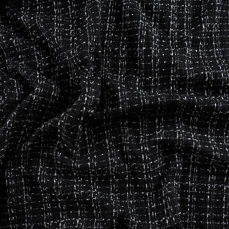 Мягкая, пластичная и объемная ткань, с разреженной и рельефной вывязанной структурой. Буклированный твид в стиле Шанель буквально соткан из различных по толщине и текстуре нитей, образующих рисунок в виде клетки. В плетение добавлена блестящая люрексная нить. Твид идеально подходит для пошива платьев, юбок, жакетов, легких пальто, эффектных бомберов и курток.