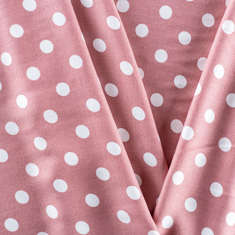 Плотная и мягкая ткань, имеет саржевое плетение и характерный диагональный рубчик на поверхности. Отлично сохраняет форму, не сильно мнется и не деформируется в процессе эксплуатации.  Красиво ложится в складки, поэтому прекрасно подойдет на длинные драпированные юбки и платья, на свободные брюки или шорты, топы.