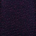 Плотная и мягкая ткань фиолетово-синего оттенка с хаотичным мелким принтом цвета фуксии, имеет саржевое плетение и характерный диагональный рубчик на поверхности. Отлично сохраняет форму, не сильно мнется и не деформируется в процессе эксплуатации. Красиво ложится в складки, поэтому прекрасно подойдет на длинные драпированные юбки и платья, на свободные брюки или шорты, топы.