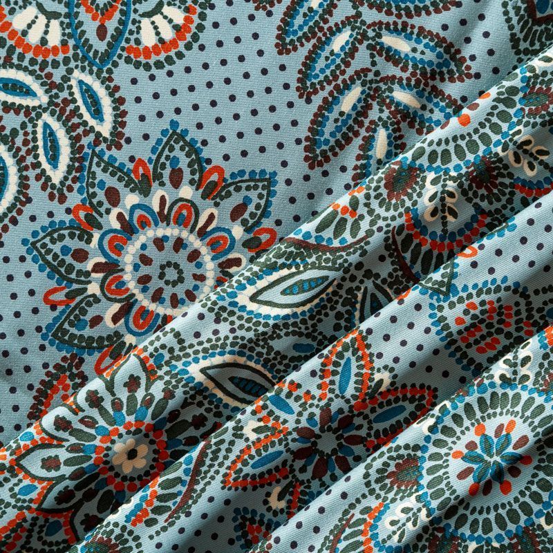 Плотная и мягкая ткань мятно-зеленого оттенка со стилизованным цветочным орнаментом, имеет саржевое плетение и характерный диагональный рубчик на поверхности. Отлично сохраняет форму, не сильно мнется и не деформируется в процессе эксплуатации.  Красиво ложится в складки, поэтому прекрасно подойдет на длинные драпированные юбки и платья, на свободные брюки или шорты, топы.