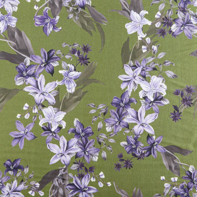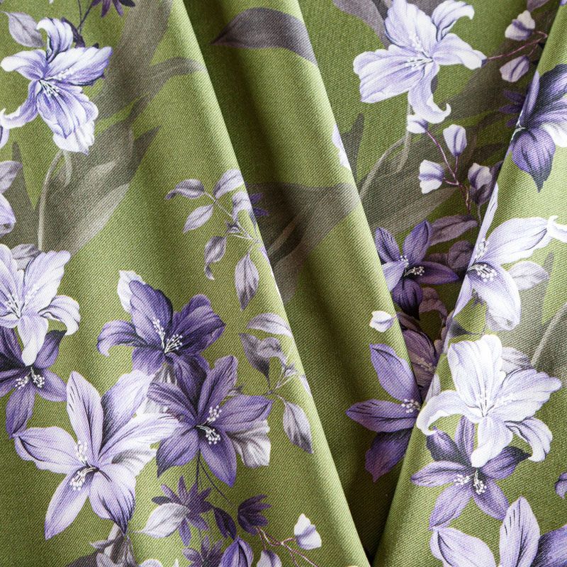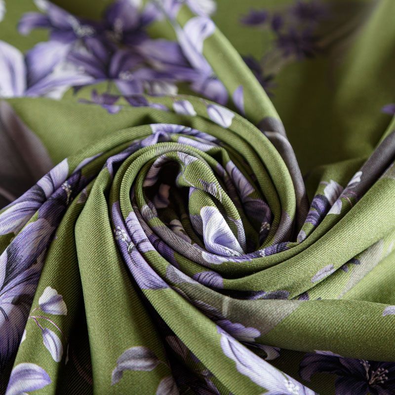 Плотная и мягкая ткань, имеет саржеве плетение и характерный диагональный рубчик на поверхности. Отлично сохраняет форму, не сильно мнется и не деформируется в процессе эксплуатации. Красиво ложится в складки, поэтому прекрасно подойдет на длинные драпированные юбки и платья, на свободные брюки или шорты, топы.