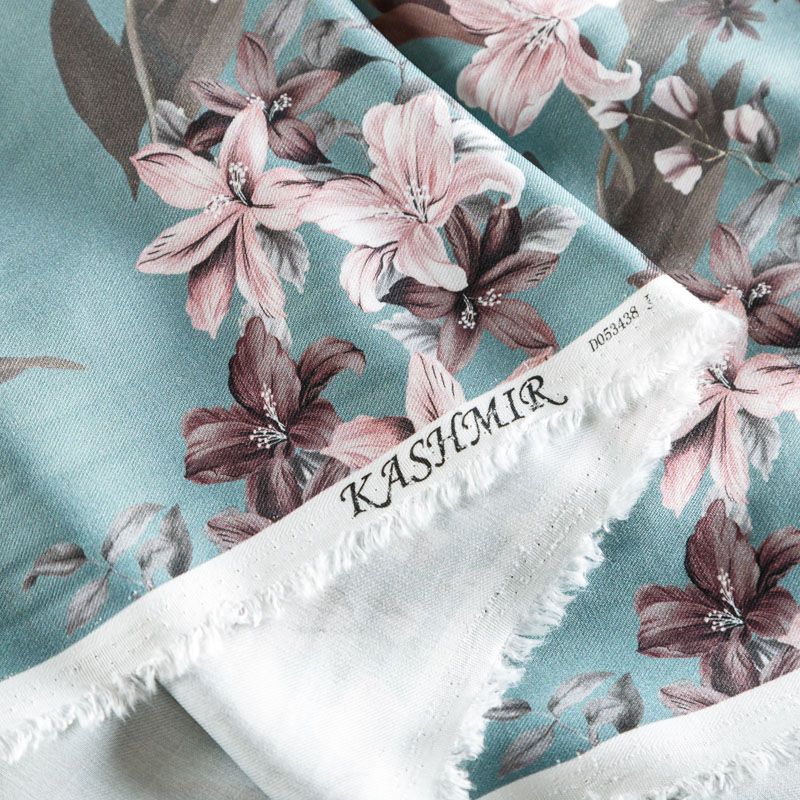Твил-штапель 069-06479 серо-бирюзовый принтованный в Нарьян-Маре