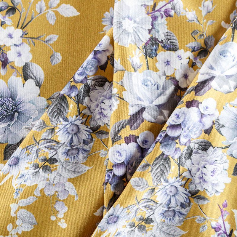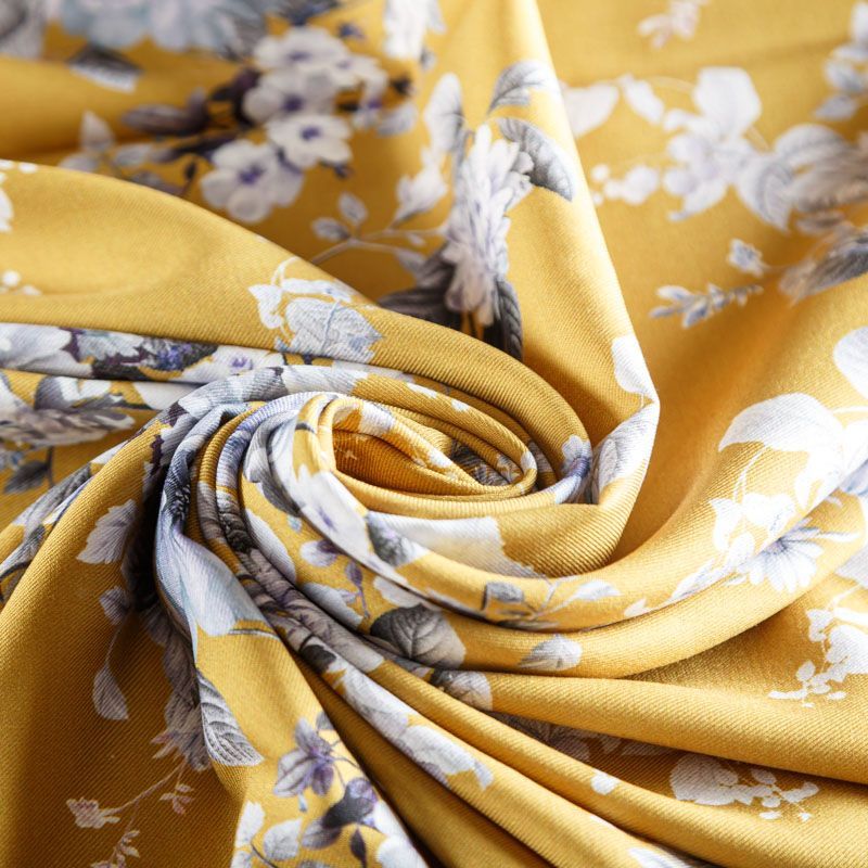 Плотная и мягкая ткань, имеет саржеве плетение и характерный диагональный рубчик на поверхности. Отлично сохраняет форму, не сильно мнется и не деформируется в процессе эксплуатации. Красиво ложится в складки, поэтому прекрасно подойдет на длинные драпированные юбки и платья, на свободные брюки или шорты, топы.