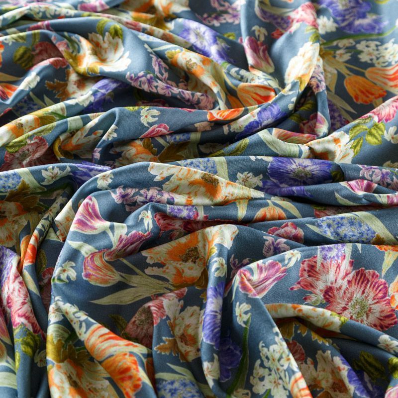 Плотная и мягкая ткань, имеет саржевое плетение и характерный диагональный рубчик на поверхности. Отлично сохраняет форму, не сильно мнется и не деформируется в процессе эксплуатации. Красиво ложится в складки, поэтому прекрасно подойдет на длинные драпированные юбки и платья, на свободные брюки или шорты, топы.
