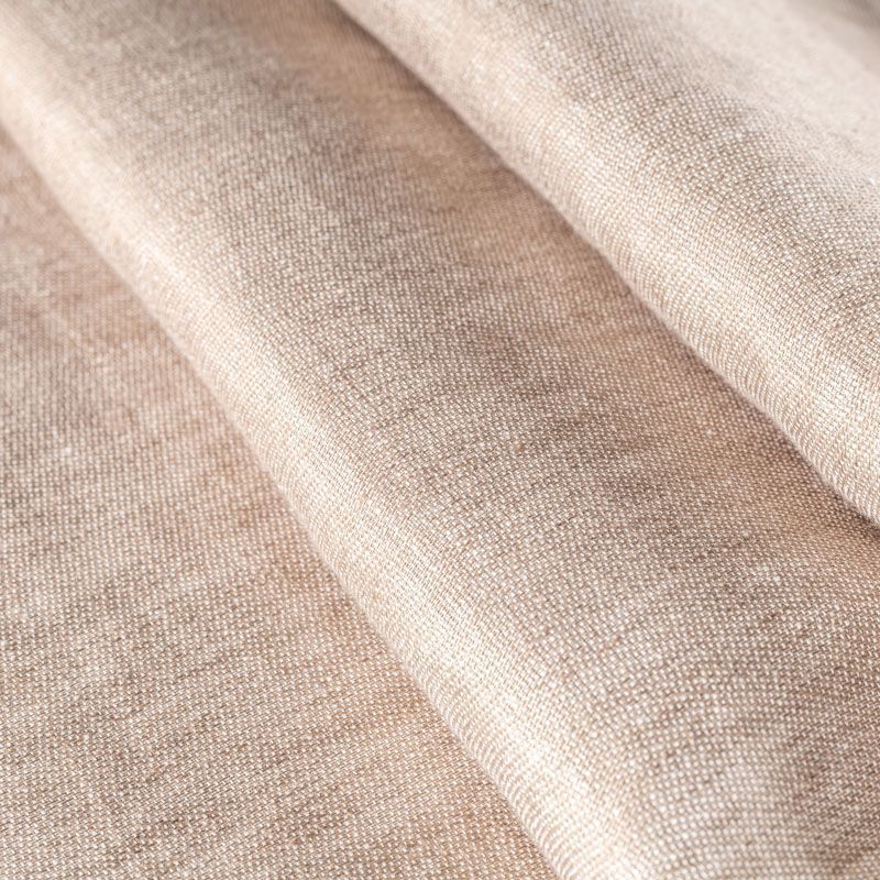 Ткань изготовлена изо льна методом полотняного переплетения. Она прочная, достаточно плотная,  держит форму и обладает ярко выраженной фактурой. Эта ткань подойдет для пошива штор, римских штор, предметов столового белья. Её можно использовать для декора интерьера загородного дома или веранды.