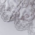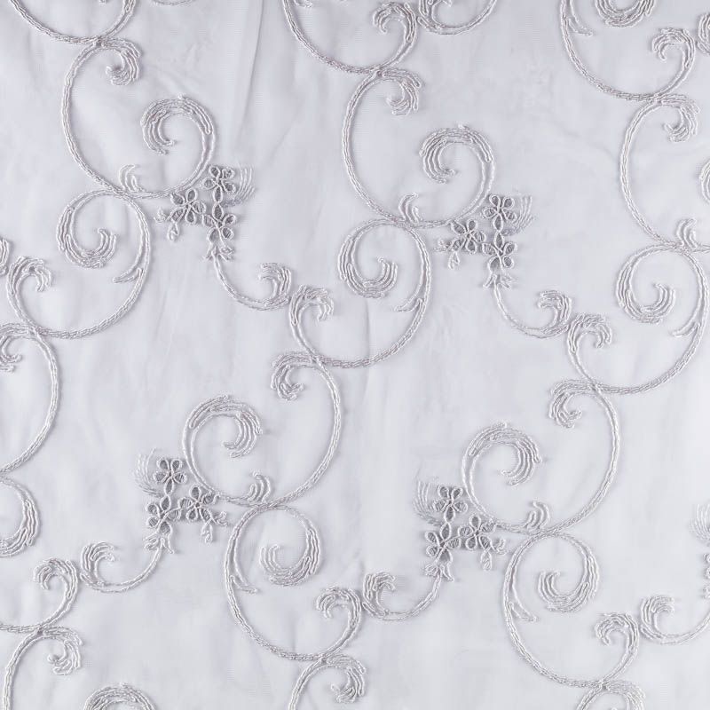 Сетка с вышивкой – это роскошный элемент дизайна, который преобразит любое помещение. Она отлично пропускает воздух, поэтому быстро сохнет после стирки. Прочная, ткань прослужит долго. Выдерживает большое количество стирок. Легкая, фактура ткани практически невесома, поэтому можно не опасаясь крепить ее даже на самый тонкий карниз. Сутажная элегантная вышивка в виде фантазийных завитков и вензелей расположена по всей высоте ткани, нижний край украшен купонной вышивкой, без утяжелителя, фигурный.