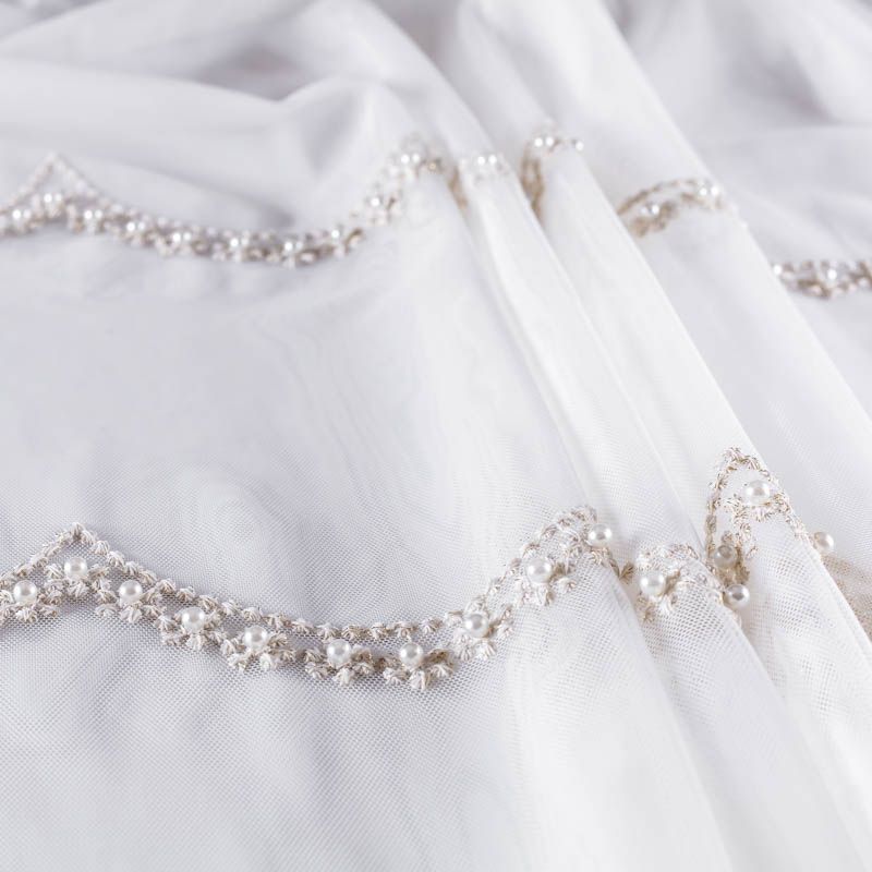 Сетка с вышивкой – это роскошный элемент дизайна, который преобразит любое помещение. Она отлично пропускает воздух, поэтому быстро сохнет после стирки. Прочная, ткань прослужит долго. Выдерживает большое количество стирок. Легкая, фактура ткани практически невесома, поэтому можно не опасаясь крепить ее даже на самый тонкий карниз. Нежная цветочная вышивка с круглыми бусинами в тон тюля расположена ярусами, нижний край украшен вышитым фестоном, без утяжелителя, фигурный.