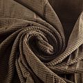 Плательно-костюмный вельвет средней плотности, но удивительно мягкий с матовым блеском и бархатистой поверхностью. За счет вытравки ворса лицевая сторона фактурная, в рубчик средней толщины. Ткань очень пластичная, хорошо и мягко драпируется, не мнется. Прекрасно подходит для пошива костюмов, жакетов, платьев, юбок, брюк, шорт, а также  для изготовления даже детской одежды.