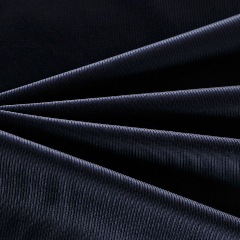Итальянский костюмно-плательный вельвет из хлопка в черном оттенке. Очень приятный тактильно, поверхность бархатистая, рубчик средней ширины,  тянется за счет эластана в составе, не просвечивает. Подойдет для пошива костюма, платья, юбки, брюк, верхней одежды.