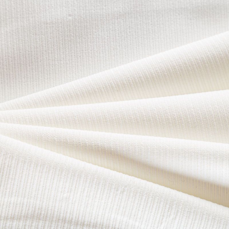 Итальянский хлопковый вельвет костюмно-плательной плотности в молочном оттенке. Ткань имеет матовую фактурную поверхность в разноразмерный чередующийся рубчик, ворс короткий, мягкий и приятный на ощупь. Тянется за счет эластана в составе, хорошо драпируется и держит форму. Прекрасный вариант для пошива костюма, юбки, широких брюк, шорт, комбинезона, жакета, куртки или тренча.