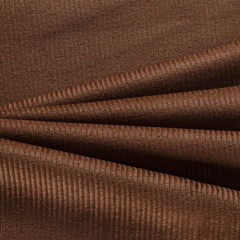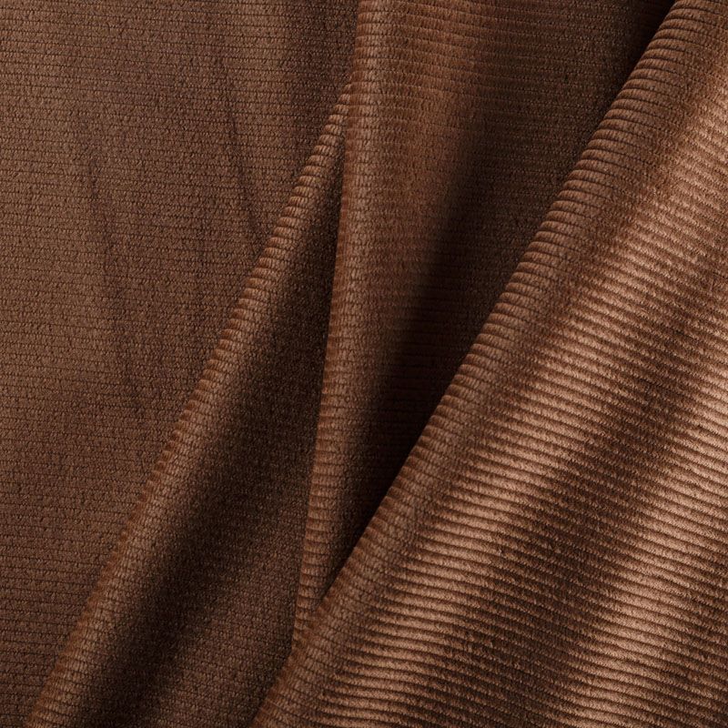 Итальянский хлопковый вельвет костюмно-плательной плотности коричневого оттенка. Ткань имеет матовую фактурную поверхность в средний по ширине рубчик, ворс короткий, мягкий и приятный на ощупь. Хорошо драпируется и держит форму. Прекрасный вариант для пошива костюма, юбки, широких брюк, шорт, комбинезона, жакета, куртки или тренча.