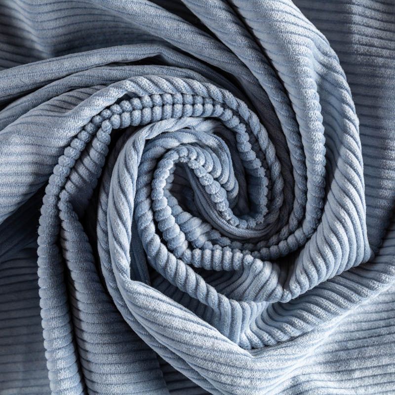 Костюмно-плательный вельвет из хлопка в красивом холодном оттенке голубого цвета. Очень приятный тактильно, поверхность бархатистая, рубчик средней ширины, не тянется, не просвечивает. Подойдет для пошива костюма, платья, юбки, брюк.