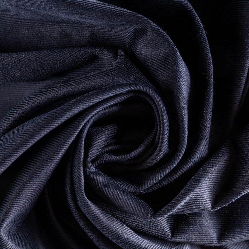 Итальянский костюмно-плательный вельвет из хлопка в глубоком синем цвете. Очень приятный тактильно, поверхность бархатистая в тонкий рубчик, немного тянется, не просвечивает. Подойдет для пошива костюма, жакета, платья, сарафана, юбки или брюк.