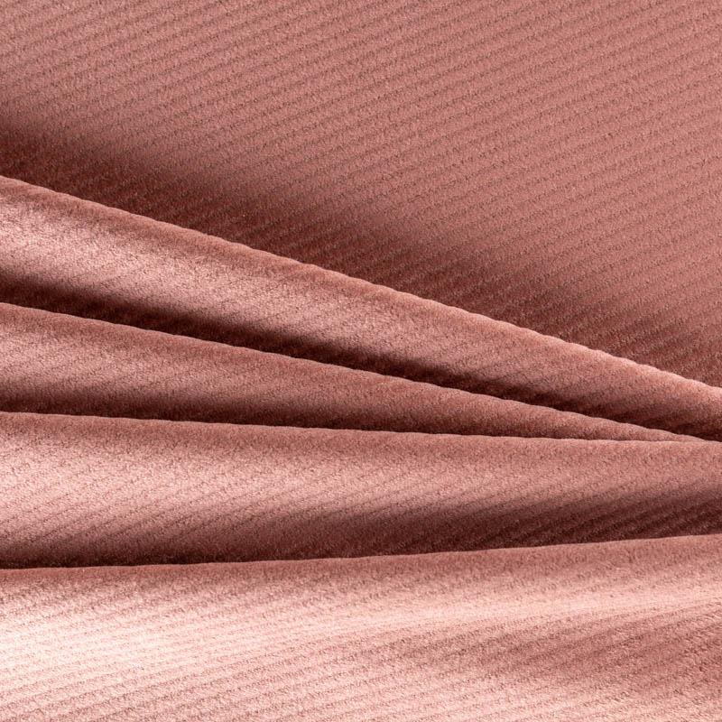 Ткань средней плотности, но удивительно нежная с матовым блеском и мягкой бархатистой поверхностью. За счет вытравки ворса лицевая сторона фактурная, в полоску. Вельвет эластичный, хорошо и мягко драпируется, не мнется. Прекрасно подходит для пошива свитшотов, платьев, юбок, спортивных костюмов, а также  для изготовления даже детской одежды.