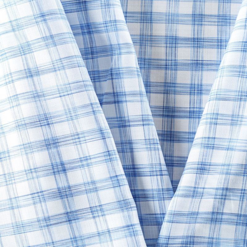 Итальянская вискоза белого оттенка в голубую меланжевую клетку. Ткань тонкая, но не просвечивает, отлично драпируется и струится, приятная на ощупь. Прекрасно подойдет для пошива платья, сарафана, топа, блузки, юбки, пижамного костюма.
