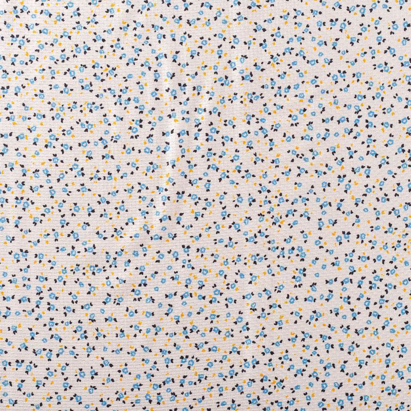 Итальянская жаккардовая вискоза сливочного оттенка с милыми стилизованными цветочками голубого цвета. Ткань тонкая, слегка просвечивает, отлично драпируется и струится, приятная на ощупь. Прекрасно подойдет для пошива платья, сарафана, топа, блузки, рубашки, юбки, пижамного костюма.