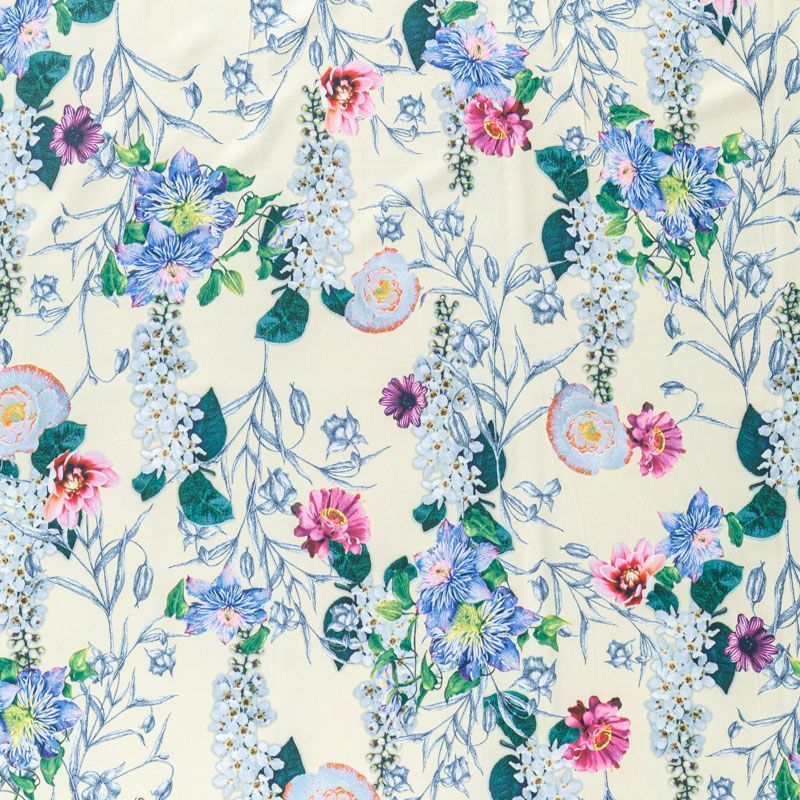 Это элегантная струящаяся ткань, которая превосходно драпируется, всегда изящно выглядит и остается легкой и воздушной,  имеет высокую прочность и большую износоустойчивость. Поверхность ткани матовая, гладкая и ровная, очень приятная на ощупь. Используется для пошива блуз, юбок, платьев, сарафанов, широких брюк.