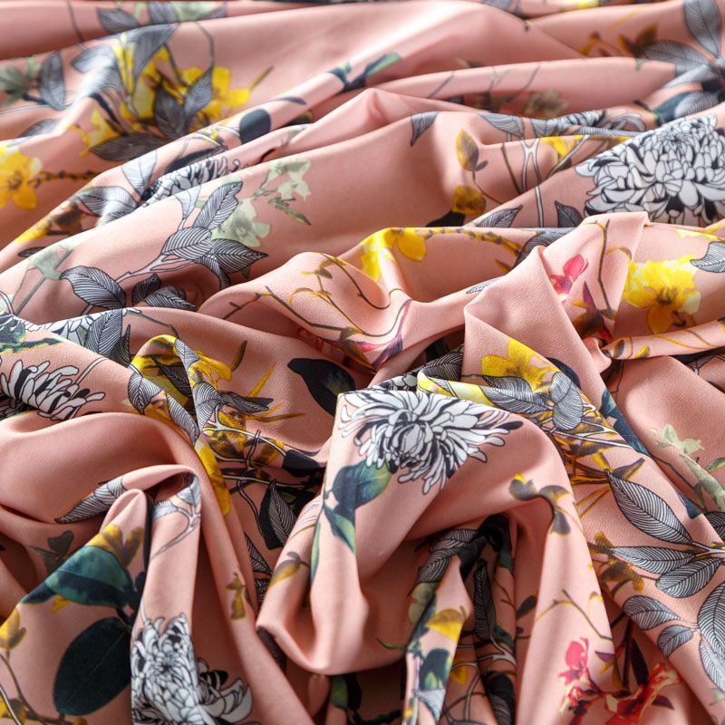 Легкая набивная ткань с цветочным принтом имеет высокую прочность, большую износоустойчивость. Ткань упругая, мягкая и хорошо драпируется, тянется за счет эластана в составе, образует струящиеся складки. Идеально подойдет для пошива блуз, юбок, платьев, сарафанов.