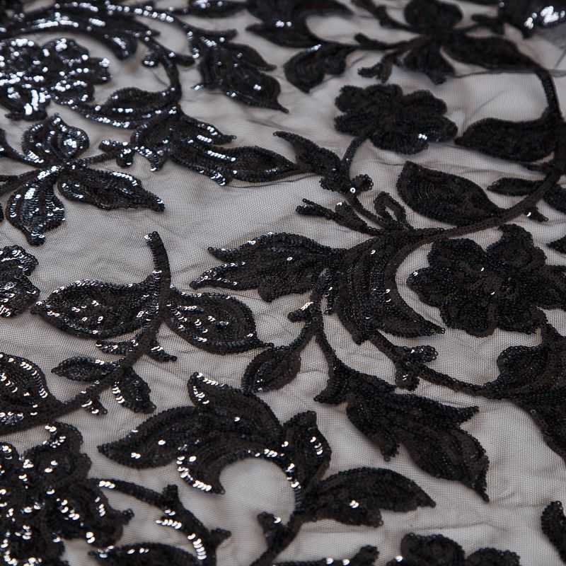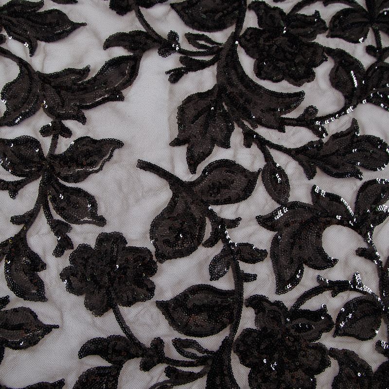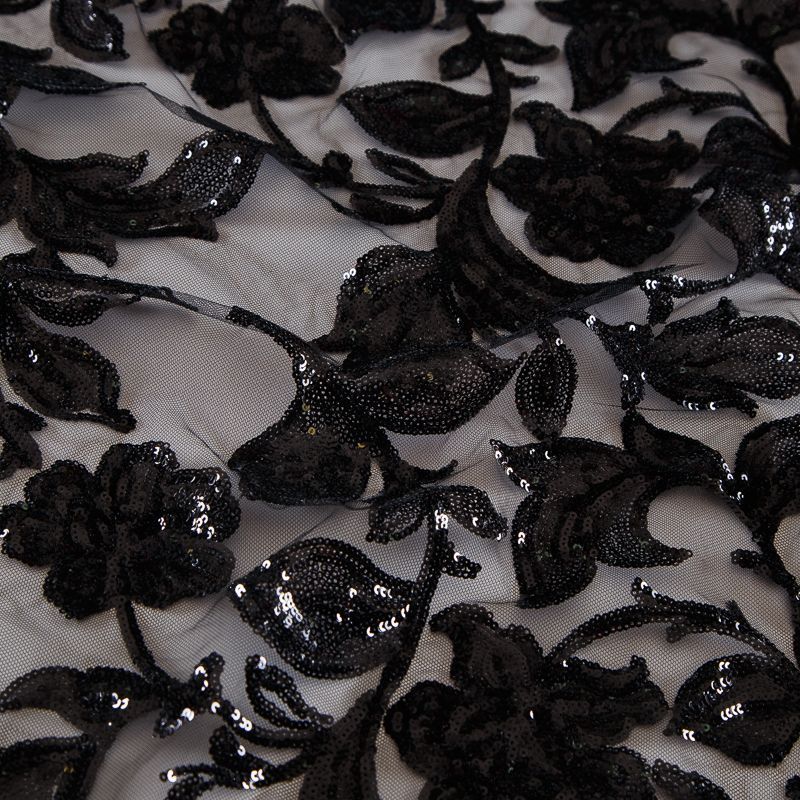 Вышивка с пайетками на сетке Armani 050-19126 черный
