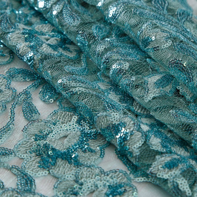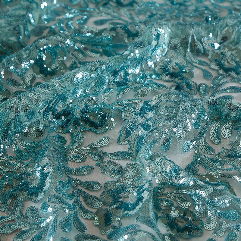 Вышивка с пайетками на сетке Armani 050-19131 морская волна в Нарьян-Маре