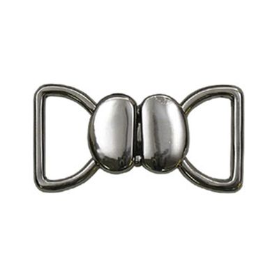 Декоративная металлическая застёжка состоит из 2-х частей, которые при закрывании образуют овал. Для застёгивания детали вставляются одна в другую. Имеются отверстия для фиксации застёжки на изделии лентой шириной 10 мм. Используется для соединения деталей, а также украшения женского нижнего белья, купальников, одежды, сумок и т.д. Изготовлена из качественного сплава металлов, имеет блестящую поверхность, покрыта защитным слоем, который дает возможность изделию не ржаветь. При значительном повреждении защитного слоя ржавение возможно.