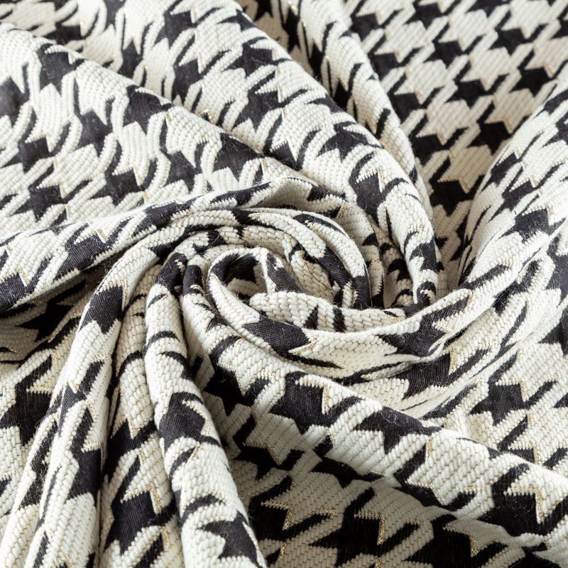 Плотная итальянская ткань молочного оттенка с жаккардовой структурой плетения нитей, образующих рисунок крупной гусиной лапки, украшенной люресовой нитью. Жаккард отлично держит форму, приятный и мягкий на ощупь. Прекрасно подойдет для пошива теплого костюма, жилета, пальто, бомбера.