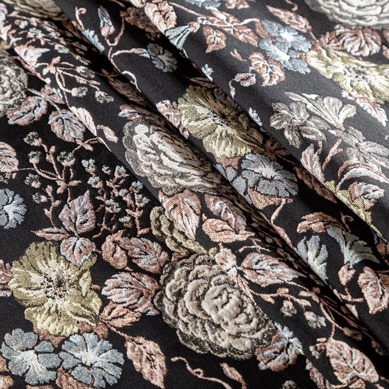 Итальянский оригинальный жаккард-гобелен с крупными цветами в пастельных оттенках на черном фоне. Ткань плотная, отлично держит форму, очень прочная, долговечная. Поверхность с красивой фактурой, образованной методом жаккардового плетения. Подойдет для создания эксклюзивных пальто, жакетов, теплых костюмов, а также для сумок и других аксессуаров.
