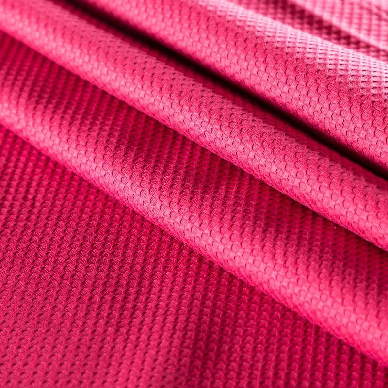 Итальянский хлопковый жаккард насыщенного оттенка фуксии с мелким орнаментом. Ткань легкая, но плотная, поверхность матовая и текстурная, хорошо драпируется и держит форму, тянется за счет эластана в составе, не просвечивает. Подойдет для пошива нарядных вечерних костюмов, корсетов, платьев-футляров, жакетов, топов, легких пальто, бомберов, юбок или шорт.