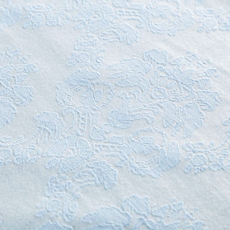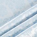 Нарядный жаккард на хлопковой основе с красивым сложным орнаментом холодного голубого оттенка. Ткань легкая, но плотная, поверхность со сдержанным блеском объемная и текстурная, хорошо драпируется и держит форму, тянется за счет эластана в составе, не просвечивает. Подойдет для пошива нарядных вечерних костюмов, платьев-футляров в стиле Dior, жакетов, топов, легких пальто, бомберов, юбок или шорт.