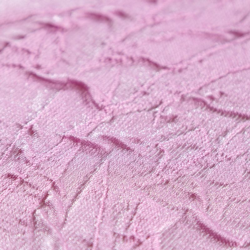 Нарядный итальянский 3D жаккард в холодном розовом оттенке. Ткань легкая, но плотная, поверхность со сдержанным блеском объемная и текстурная, хорошо драпируется и держит форму, не тянется, не просвечивает. Подойдет для пошива нарядных вечерних костюмов, платьев, жакетов, топов, легких пальто, бомберов, юбок или шорт.