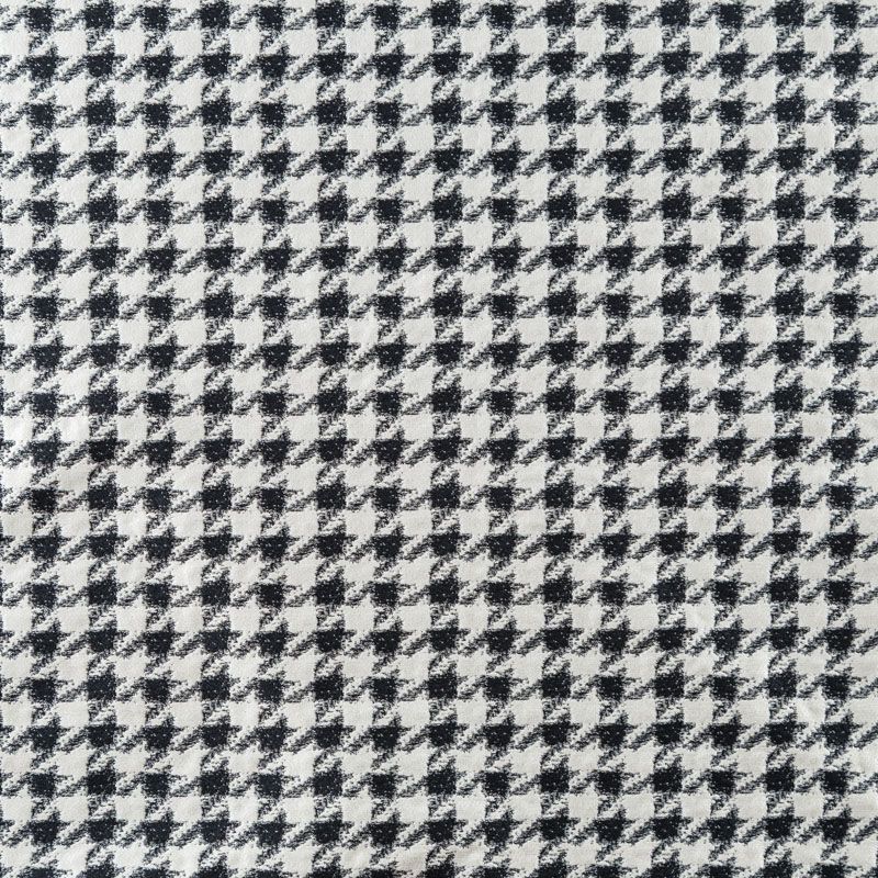 Итальянский костюмно-плательный жаккард в молочном оттенке с классическим дизайном гусиная лапка. Ткань плотная, поверхность матовая, слегка фактурная за счет плетения, хорошо драпируется и держит форму, тянется за счет эластана в составе, не просвечивает. Подойдет для пошива брючного костюма, платьев, жакетов, легких пальто, бомберов, юбок или шорт.