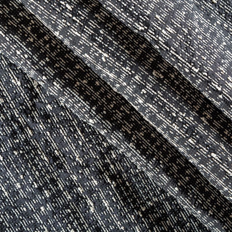 Итальяский плотный, но пластичный и не жесткий жаккард с хлопкоом, напоминающий гобелен черного цвета с добавлением нитей молочного оттенка. Ткань достаточно фактурная, держит форму, не просвечивает. Подойдет для пошива костюма, платьев-футляров в стиле Dior, жакетов, легких пальто, бомберов, юбок, брюк-палацио или шорт.