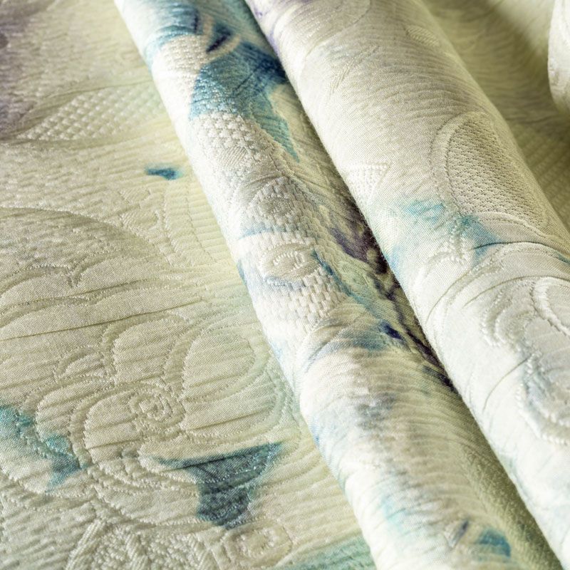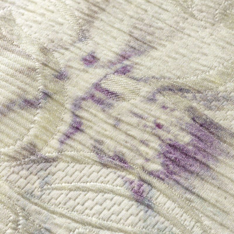Итальянский жаккард с абстрактным акварельным принтом и цветочным дизайном. Ткань плотная, поверхность со сдержанным блеском, объемная и текстурная, хорошо драпируется и держит форму, не тянется, не просвечивает. Подойдет для пошива нарядных вечерних костюмов, платьев-футляров в стиле Dior, жакетов, топов, летних пальто, бомберов, юбок или шорт.