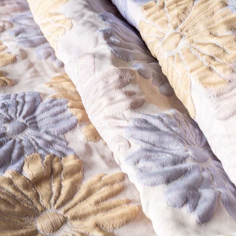 Итальянский жаккард с нежным и романтичным дизайном из фактурных ромашек голубого, светло-желтого и розового оттенков. Ткань легкая, но плотная, поверхность матовая, объемная и текстурная, хорошо драпируется и держит форму, не тянется, не просвечивает. Подойдет для пошива нарядных вечерних костюмов, платьев-футляров в стиле Dior, жакетов, топов, летних пальто, бомберов, юбок или шорт.