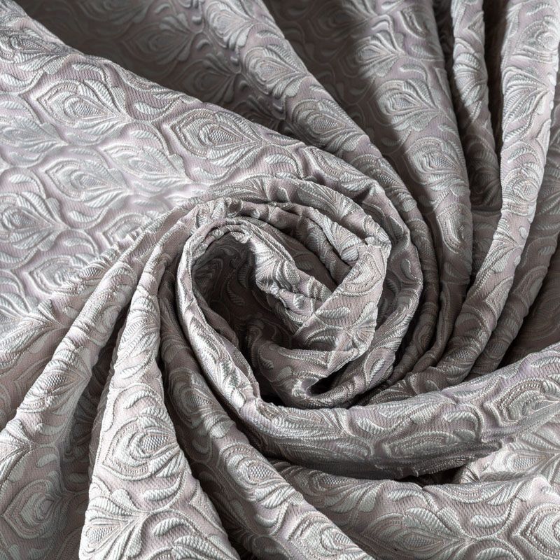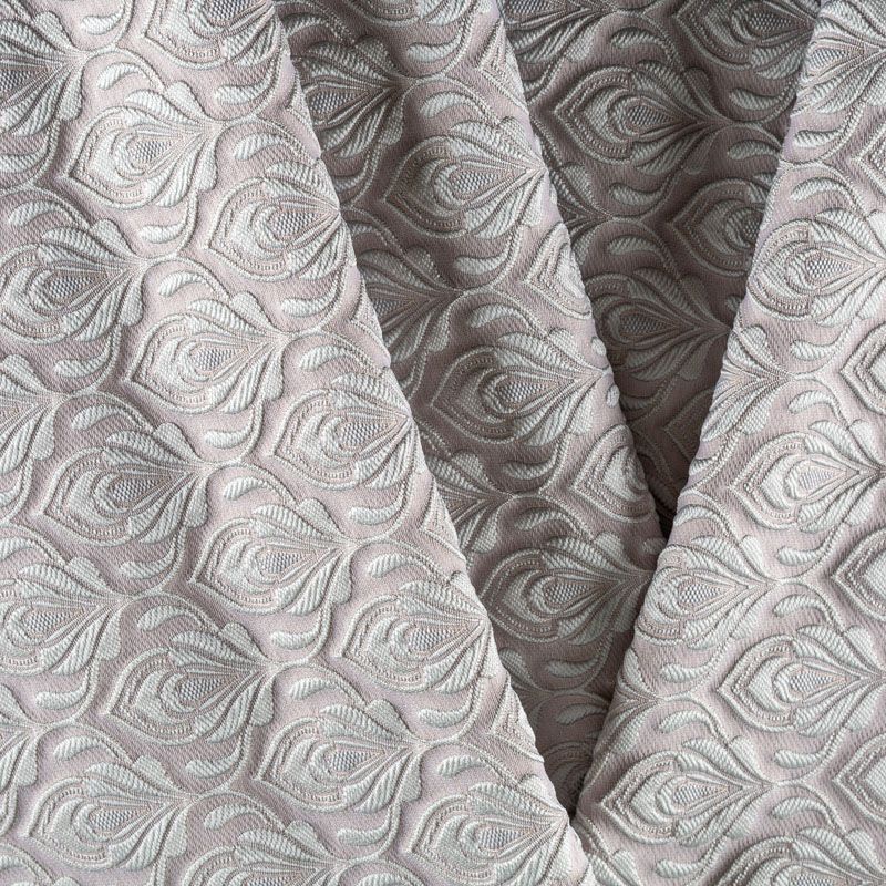 Нежный пудрово-розовый фон итальянского жаккарда  дополнен объемным фантазийным узором молочного оттенка. Ткань легкая, средней плотности, не просвечивает, не тянется. Хорошо держит форму и драпируется. Идеально подойдет для платьев различных силуэтов, костюмов, жакетов, юбок, шорт, легких пальто.