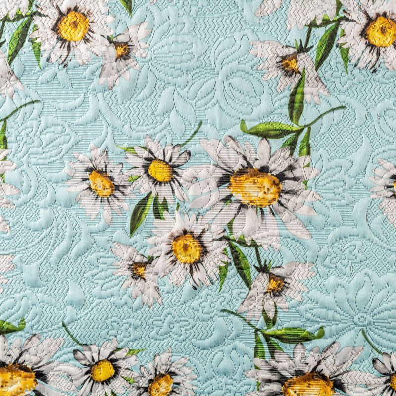 Итальянский хлопковый жаккард с реалистичным цветочным принтом и флористическим дизайном. Ткань средней плотности, поверхность матовая, объемная и фактурная, хорошо драпируется и держит форму, не тянется, не просвечивает. Подойдет для пошива нарядных вечерних костюмов, платьев-футляров в стиле Dior, жакетов, топов, летних пальто, бомберов, юбок или шорт.