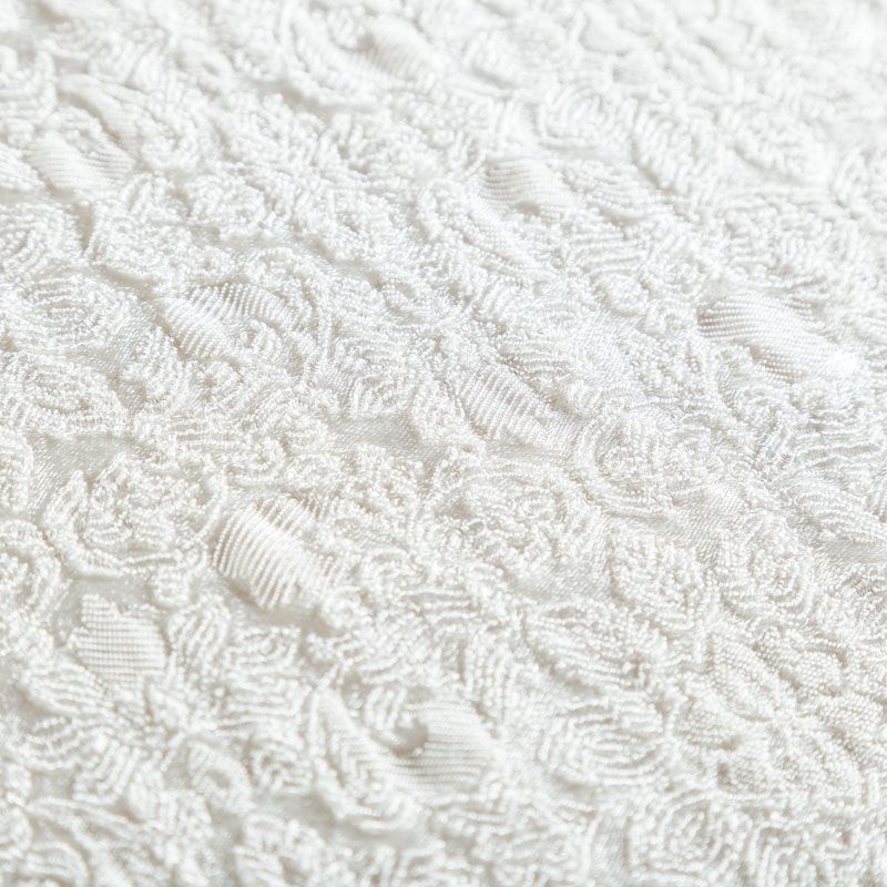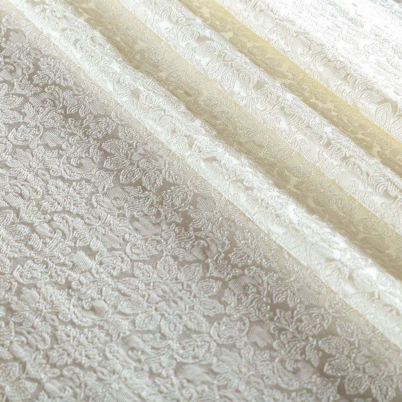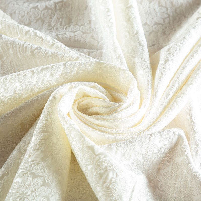 Итальянский жаккард с красивым цветочным дизайном оттенка белого жемчуга. Ткань легкая, но плотная, поверхность со сдержанным блеском объемная и текстурная, хорошо драпируется и держит форму, тянется за счет эластана в составе, не просвечивает. Подойдет для пошива нарядных вечерних костюмов, платьев-футляров в стиле Dior, жакетов, топов, легких пальто, бомберов, юбок или шорт.