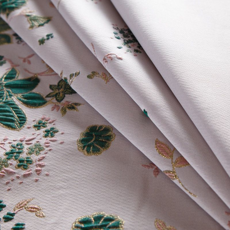 Итальянский жаккард в нежно-розовом оттенке с контрастным цветочным дизайном. Ткань легкая, но плотная, поверхность матовая, фактурная, хорошо драпируется и держит форму, не тянется и не просвечивает. Подойдет для пошива нарядных вечерних костюмов, платьев-футляров в стиле Dior, жакетов, топов, летних пальто, бомберов, юбок или шорт.